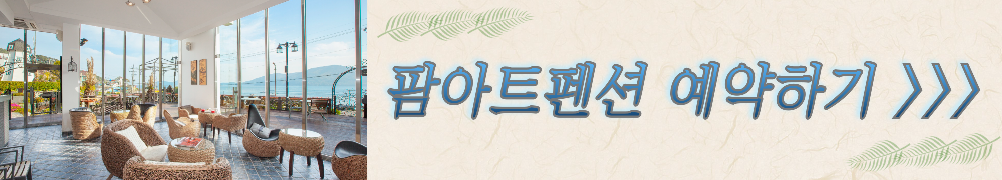 바다가 아름다운 거제도의 학동몽돌 해수욕장 근처에 자리한, 아름다운 오션뷰아 찬란한 풍경이 함께하는 곳이며, 바다를 마주한 힐링 휴식인 오션부와 여유로운 시간을 간직하고 아름 다운 추억을 만들 수 있는 곳이 팜아트펜션(PLAM ATR PENSION)입니다. 펜션안에 부대시설도 다양해서 여행의 즐거움이 배로 됩니다.