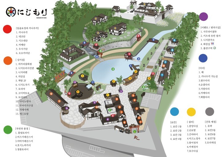 니지모리 스튜디오가 자리한 이곳은 옥지 터이자 태평 맥의 발원지로써 기운이 온화한 곳으로 성공과 강녕을 원하는 자들에게는 기운을 주는 터로써 지형이 봉황이 알을 품고 있는 형태입니다.