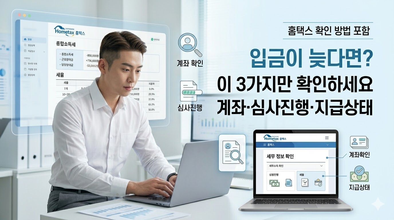 ✔ 입금이 늦다면 홈택스/손택스 심사진행현황과 환급계좌 정보를 먼저 확인하는 것이 좋습니다.