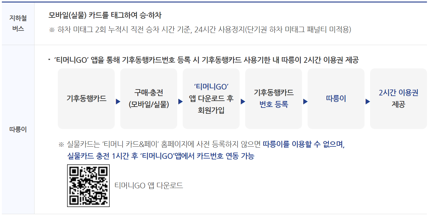 -. 이용범위 : 서울지역 지하철 + 김포골드라인, 서울시 면허 시내·마을버스, 따릉이