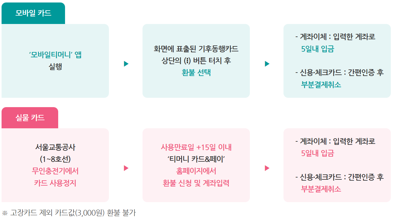 - 환불대상 : 사용만료일 전 기후동행카드 사용잔액 환불을 원하는 고객