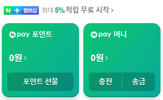 2. 네이버 페이 머니 : 내 계좌에서 충천한 금액으로, 머니로 결제하면 추가 적립이 제공됩니다.