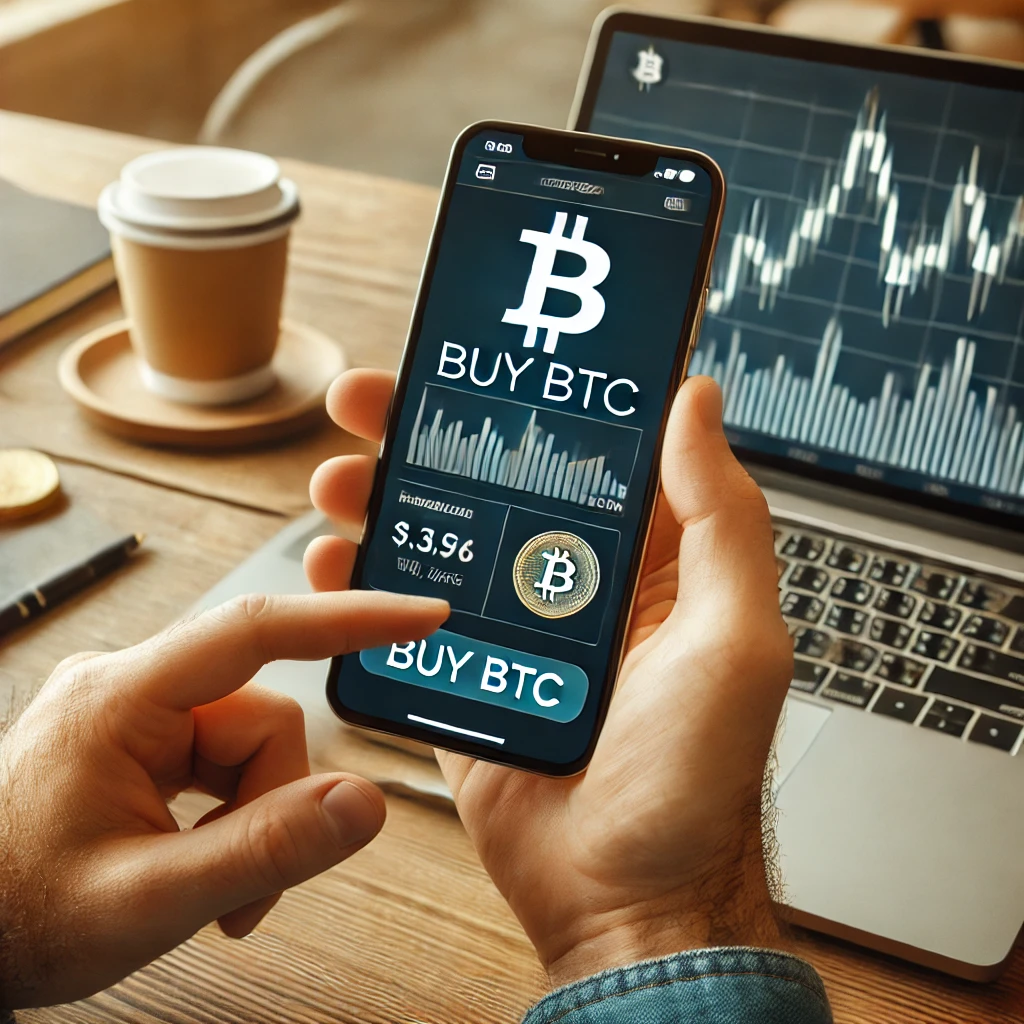 - 거래소에서 **비트코인(BTC)**을 선택하고 구매 버튼을 눌러요.