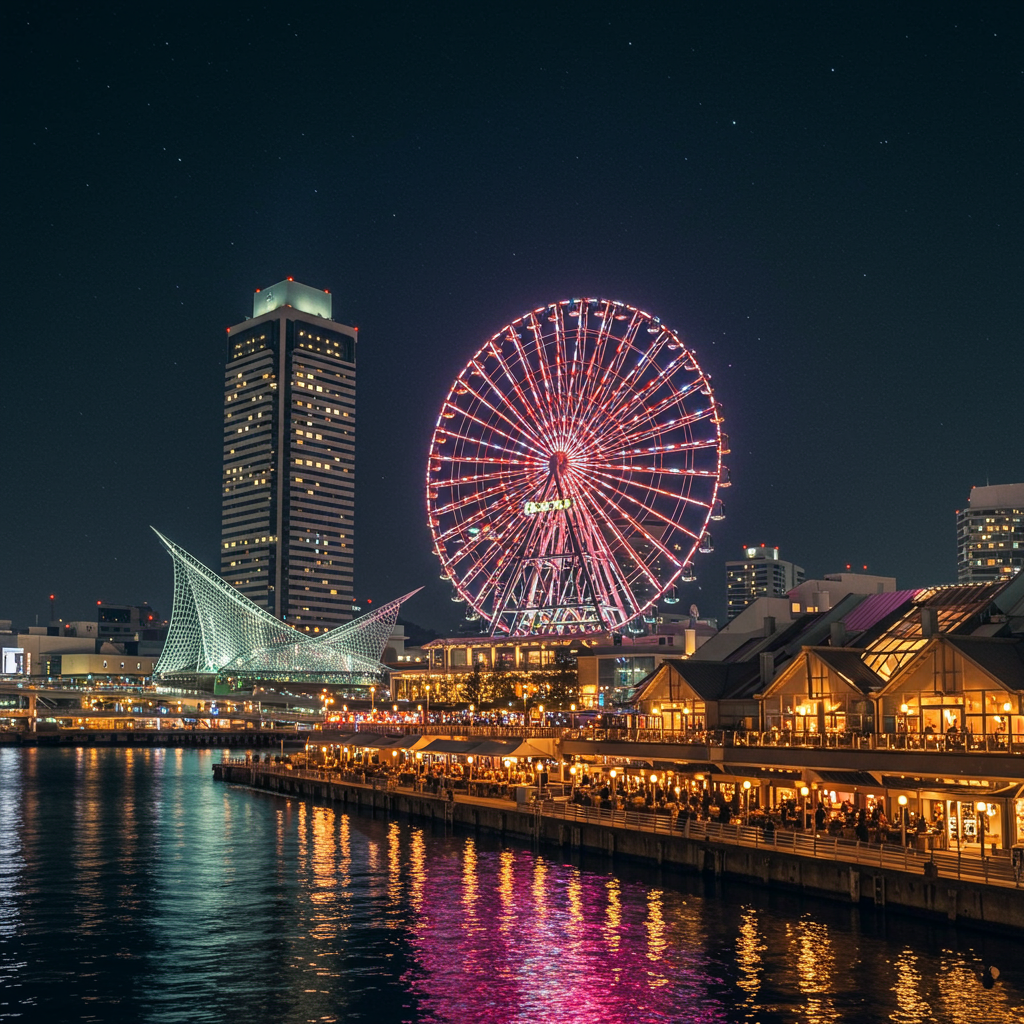 - 저녁 노을 속 크루즈 탑승 후 고베 항만 라이트업 감상