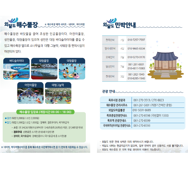 그리고 해산물이 맛있기로 유명하여 방문객들에게 신선한 회, 해물 찌개, 지역 특산물을 포함한 다양한 요리를 즐길 수 있으며, 지역 예술과 문화를 보여주는 목포 국제 영화제 및 외달도 문화 축제를 포함하여 다양한 문화 축제가 개최되기도 합니다. 다만, 한옥 민박시 예약은 필수이며, 현금 지급기가 부족하고 카드가 안 되는 곳이 많으므로 여행 시 참고하시면 괜찮을 듯합니다.