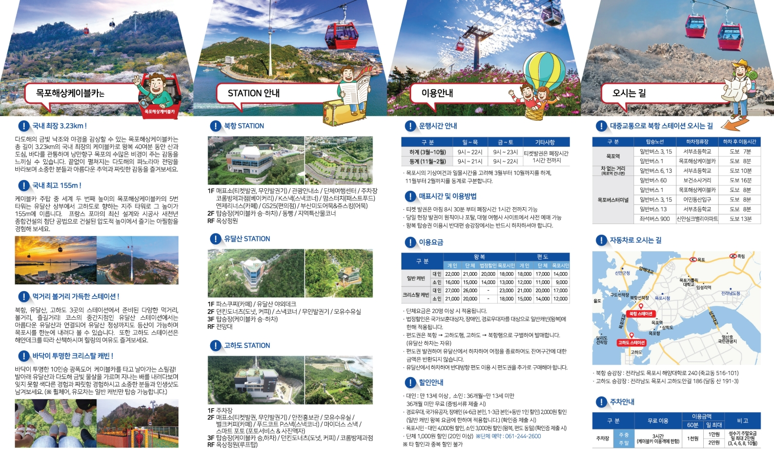 이렇듯 국내 최장 케이블카이며 고하도에서 출발하여 유달산을 거쳐 북항을 왕복으로 운행하고 있습니다. 케이블카를 탑승하고 시내 전체 풍경, 산, 바다를 한 눈에 볼 수 있는게 큰 장점입니다.
