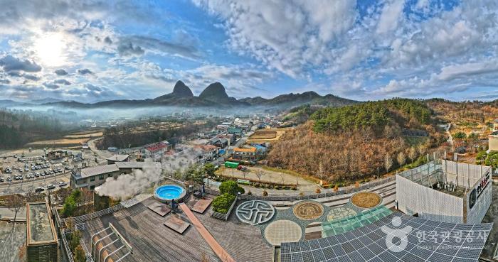 이곳은 진안군에 위치한 마이산 자락 지하 250m에서 끌어올린 청정 암반수를 이용하여 국내 최초로 도입된 양생목적형 스파입니다. 여기가 더 유명한 이유는 진안은 원래 홍삼의 고장이며 홍삼은 수삼을 쪄서 말린 인삼입니다. 이렇게 찌고 말리는 과정에서 불게 변해 홍삼이라고 불립니다.