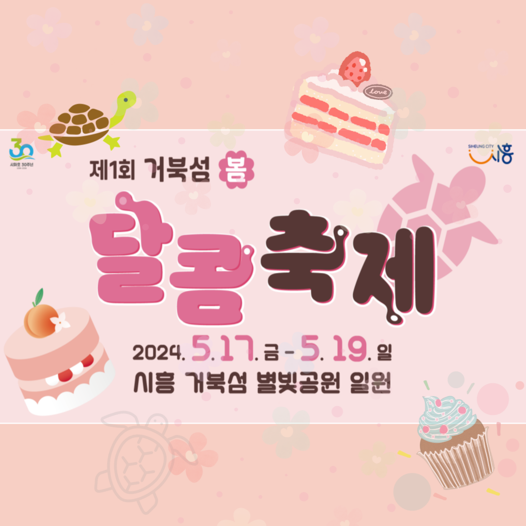 이번주에 제1회 시흥거북섬 달콤축제에 많이 참석하시어 가족 및 연인, 친구 모두 즐거운 시간을 보내시기 바랍니다.