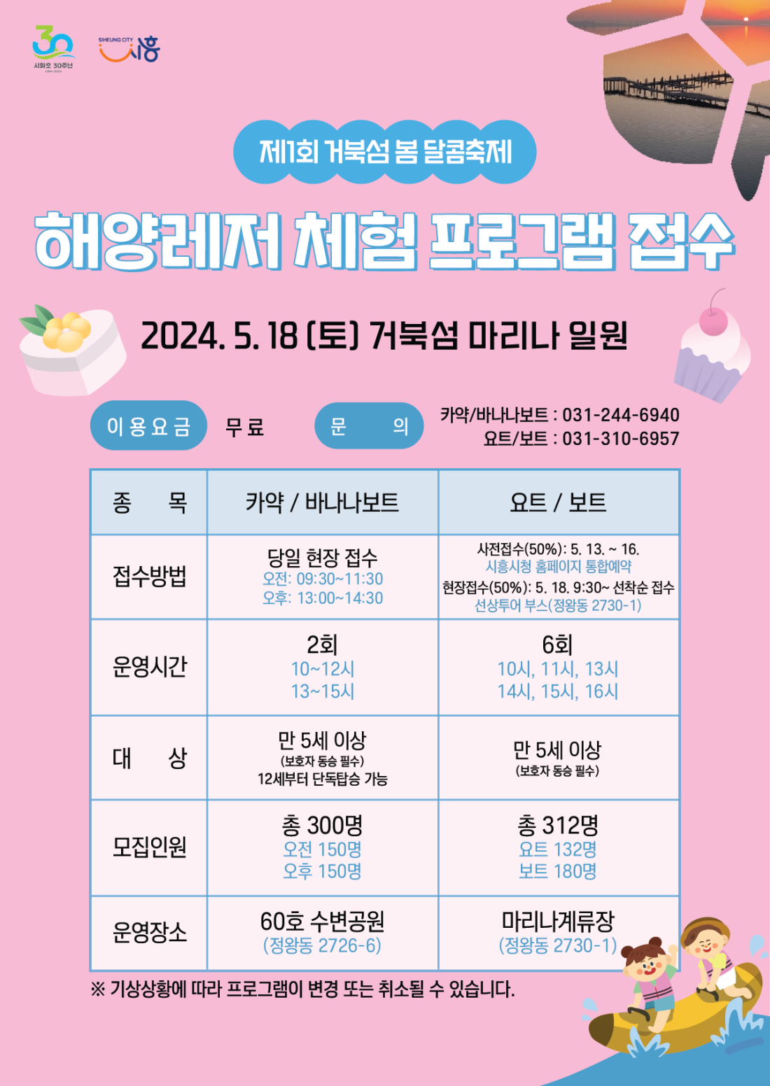 - 문의처 : 카약/바나나보트 (TEL : 031-244-6940), 요트/보트 (TEL : 031-310-6957)