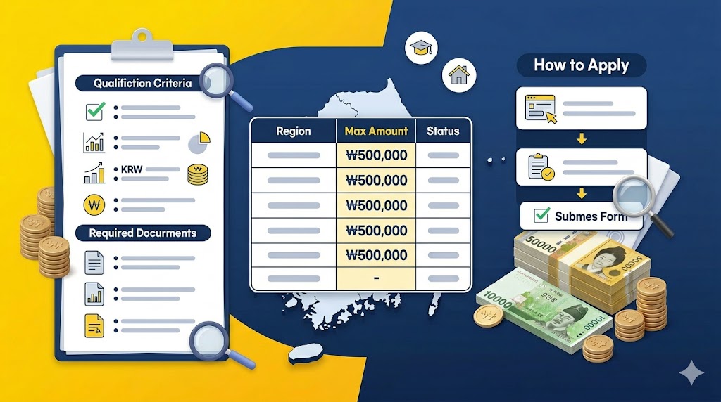 2026년 전국 지자체 지원금 신청 자격 요건 및 지역별 지원 금액 상세 비교표 인포그래픽