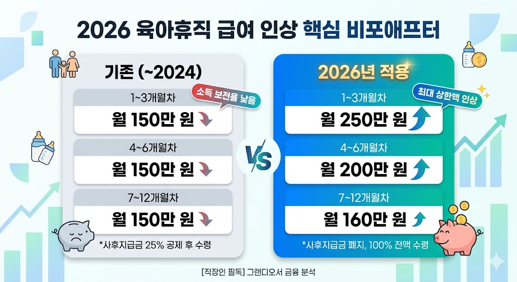 📉 1. 2026 육아휴직 급여 인상 핵심 (비교표)