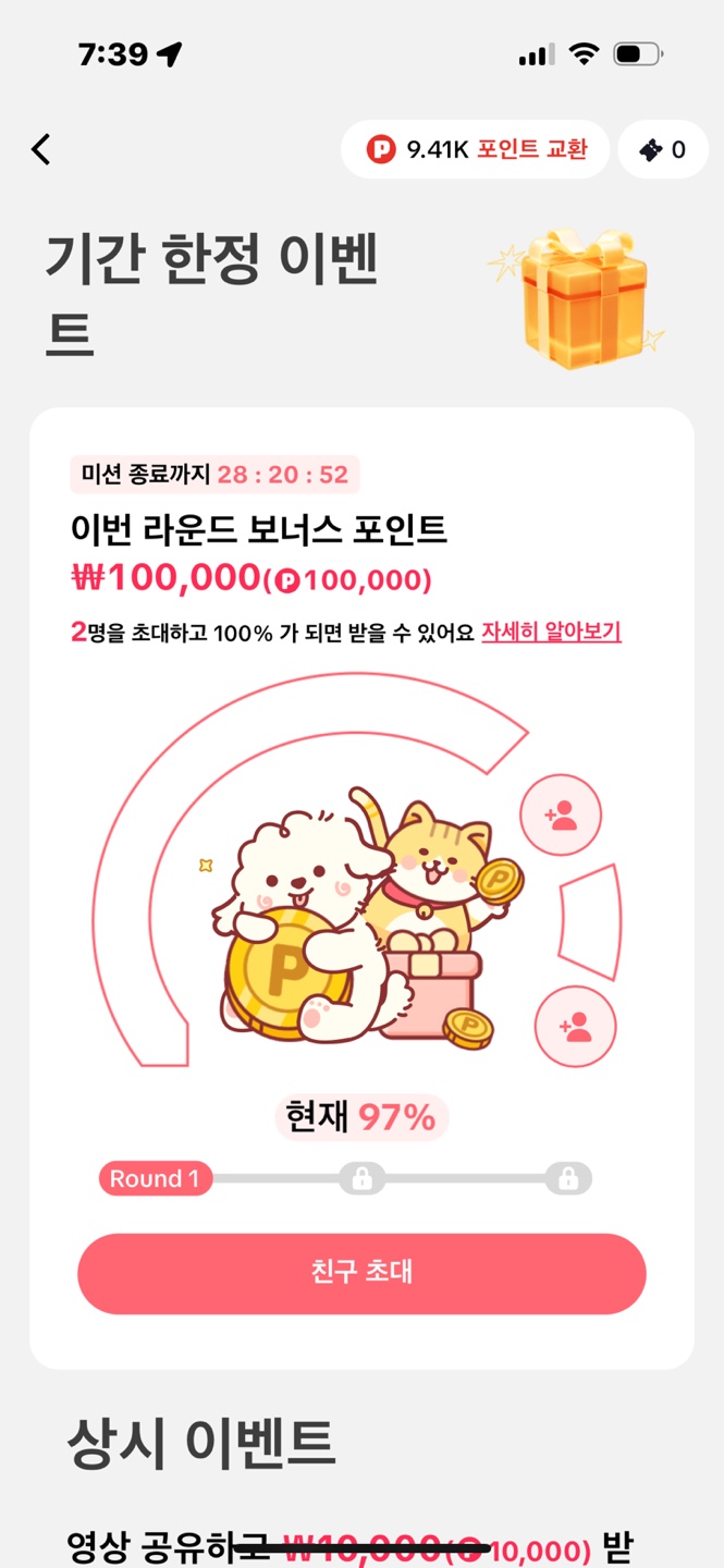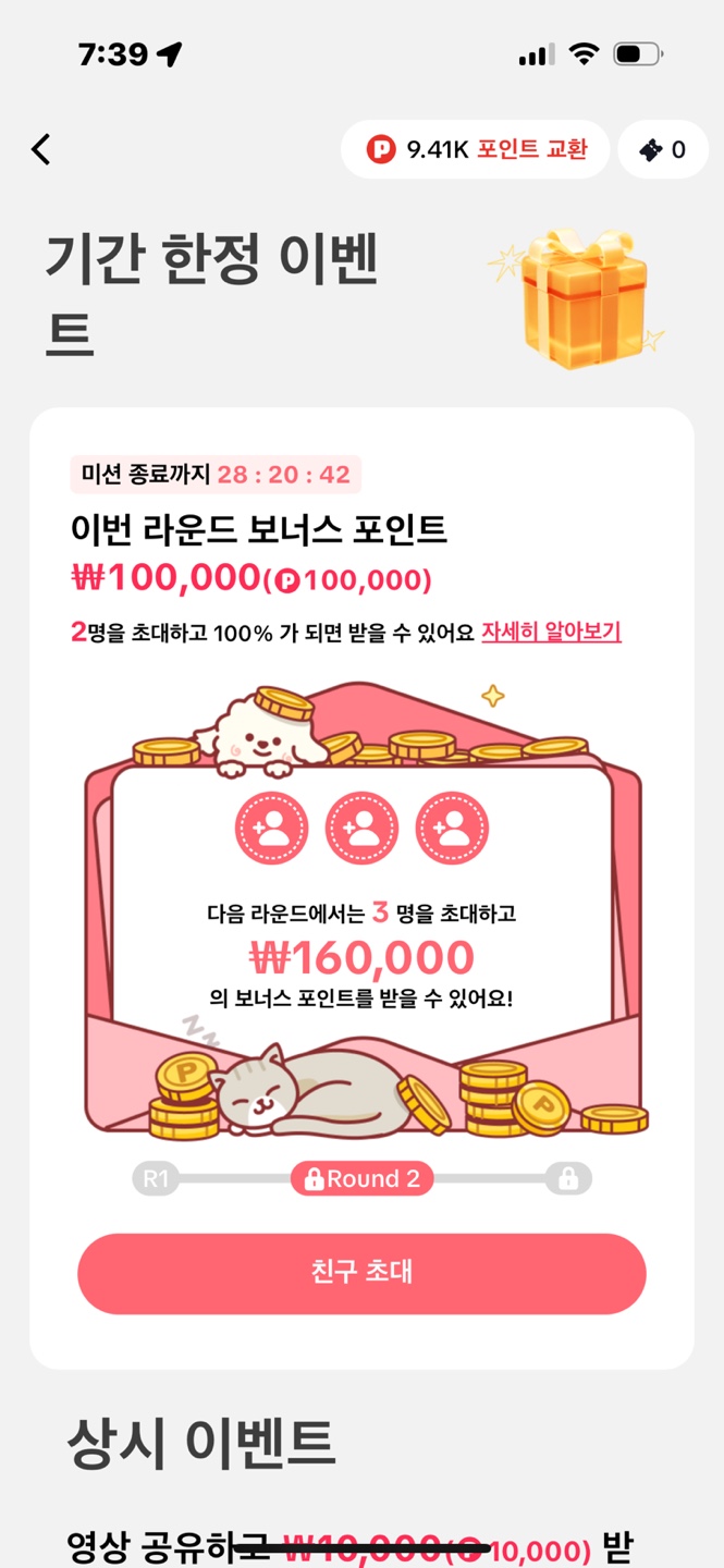 이렇게 받은 코인은 앱 내에서 확인할 수 있으며, 이후 친구를 초대하고 보상을 받는 데 사용할 수 있습니다.