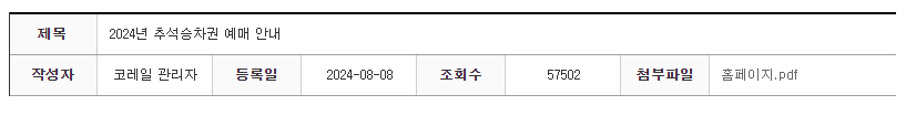 1. 코레일 추석 열차표 예매