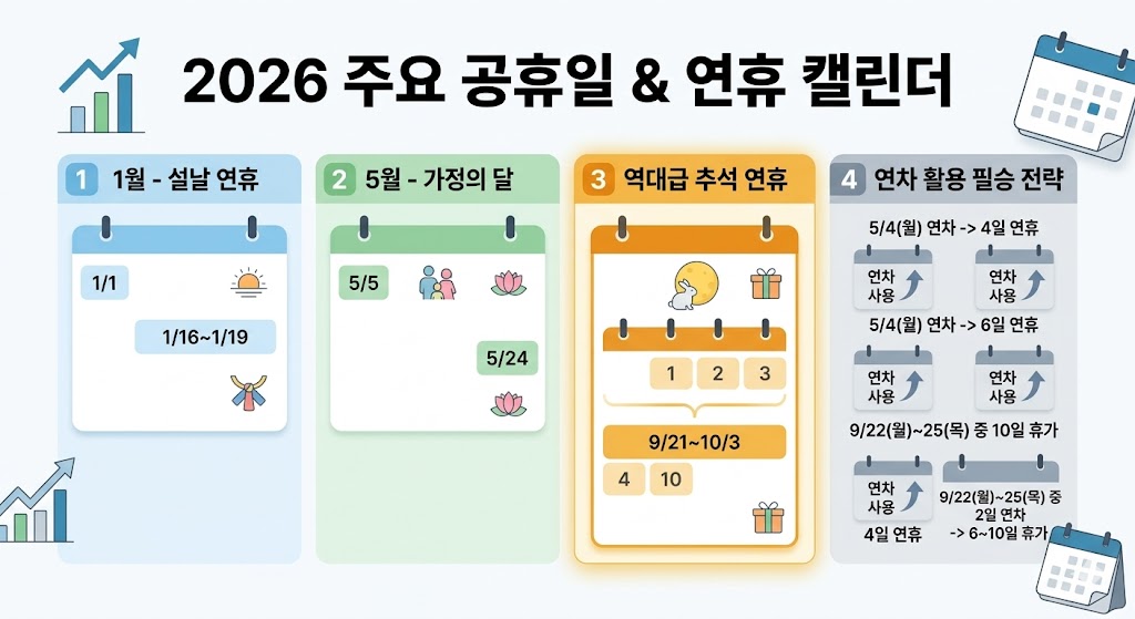 성공적인 자산 관리는 수입을 늘리는 것만큼이나 휴식의 효율성을 높이는 데서 시작됩니다. 2026년 공휴일을 미리 확인하고 스마트하게 설계해 보세요!