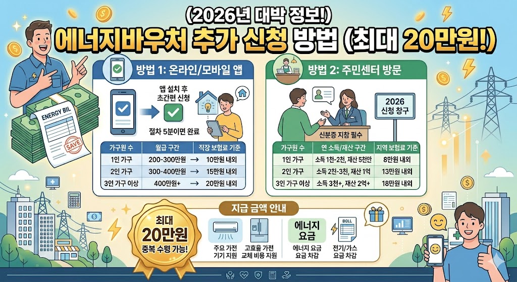 2026년 에너지바우처 추가 신청 방법 (최대 20만원 중복 수령 가능)