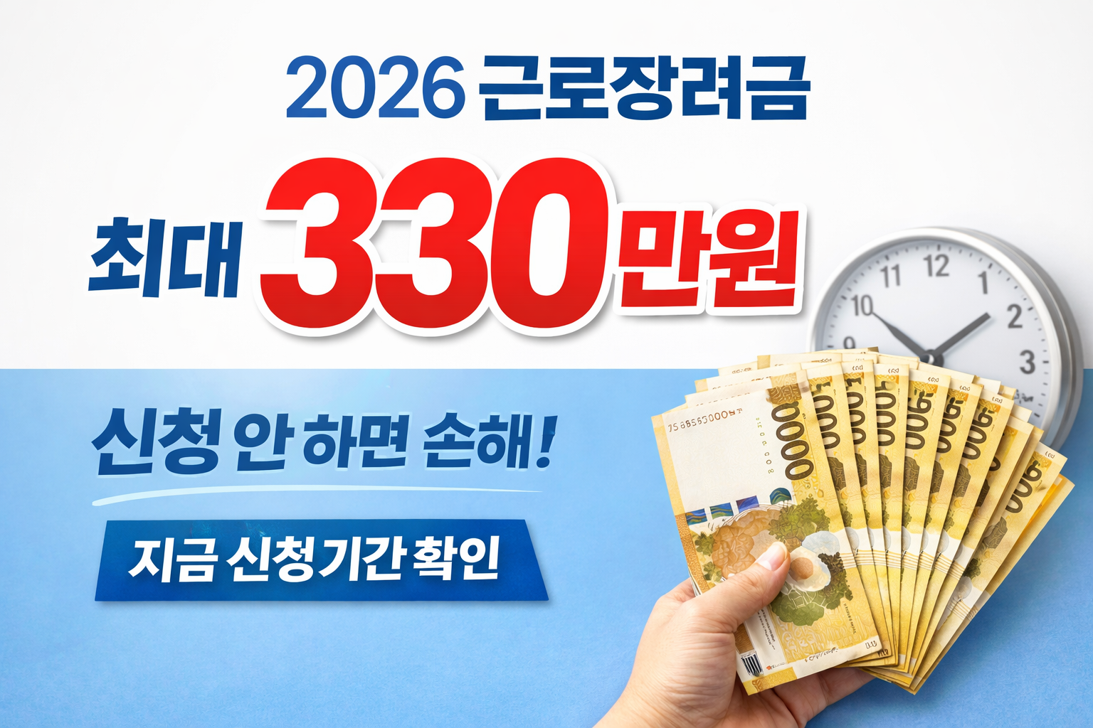 근로장려금은 가구 유형 + 총소득 구간에 따라 지급액이 달라집니다. “최대 330만원”은 일부 조건에서 가능한 상한이며, 모든 사람이 동일하게 받는 것은 아닙니다.