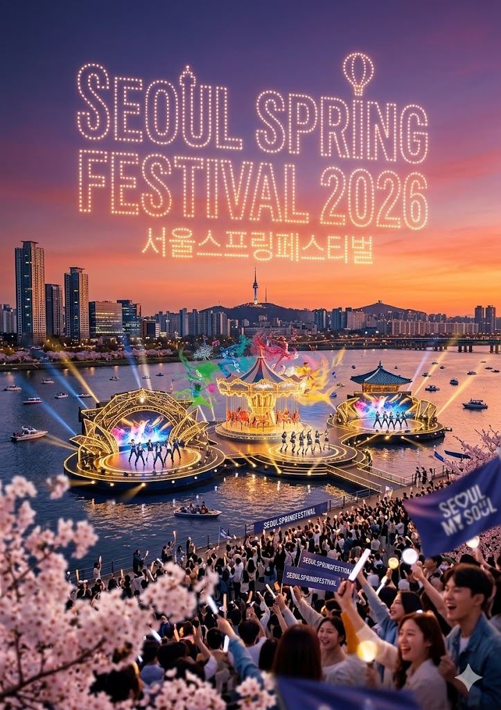 2026년 봄, 서울이 전 세계의 시선을 사로잡을 준비를 마쳤습니다. K-콘텐츠의 정수를 한강 위에서 만날 수 있는 '2026 서울스프링페스티벌'이 개최됩니다. 2,000대의 드론이 수놓는 밤하늘부터 한강 위에서 즐기는 스포츠까지! 일정, 프로그램, 명당 꿀팁까지 한 번에 정리해 드립니다.