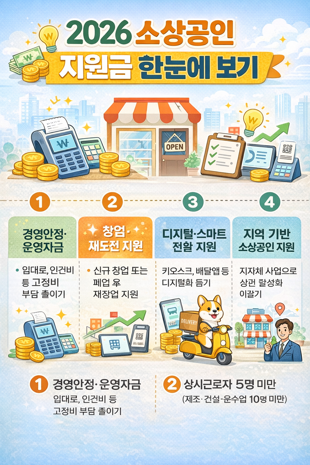 - 2026년 소상공인이 받을 수 있는 주요 정부지원금 종류