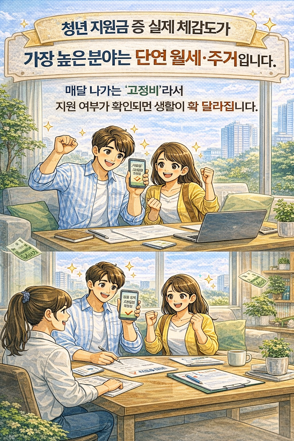 청년 지원금 중 실제 체감도가 가장 높은 분야는 단연 월세·주거입니다. 월세는 매달 나가는 고정비라서, 지원 여부가 확인되면 생활이 확 달라집니다.