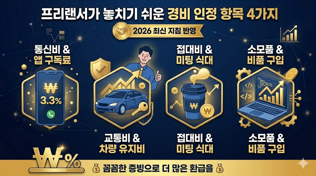 하지만 많은 분이 "나는 소득이 적으니까 괜찮겠지", "세무 용어가 너무 어려워"라며 정부가 제공하는 정당한 공제 혜택을 포기합니다. 프리랜서가 놓치기 쉬운 10가지 필수 경비 항목과 업종별 맞춤 절세 전략을 완벽하게 파헤쳐 드립니다.