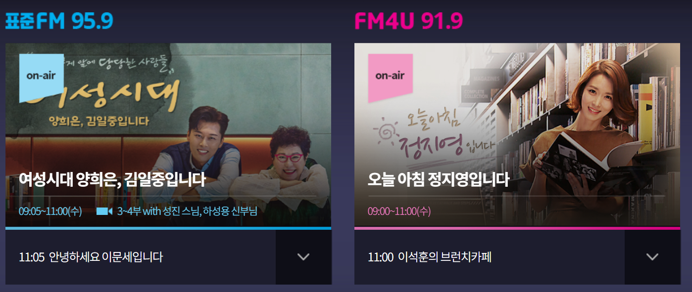 - FM4U: 젊은 층이 선호하는 팝, 록, 힙합, EDM 등을 주로 방송합니다.