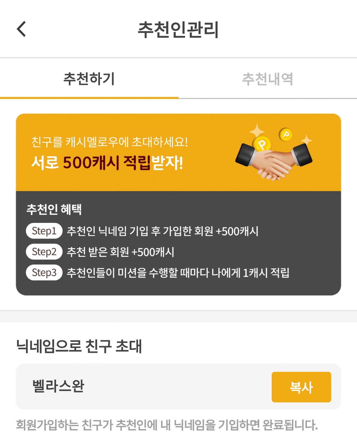- 앱 스토어나 구글 플레이에서 '캐시멜로우' 검색 후 다운로드